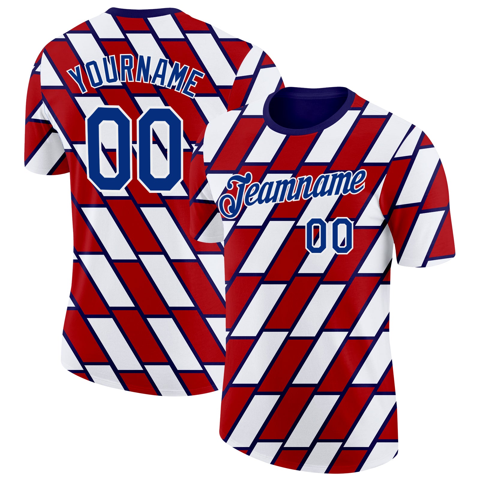 Custom Red Royal Blue-White Norway Geometric Performance T-Shirt