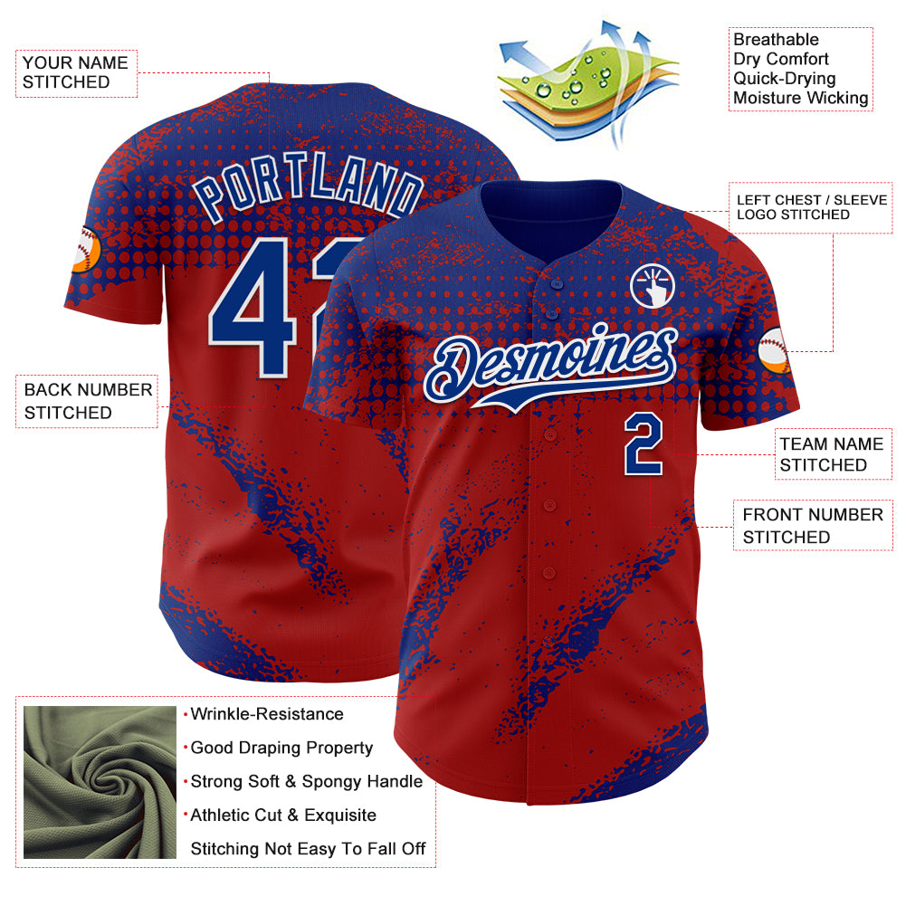 Custom Royal Red-White 3D Pattern Design Splash Grunge Fragment Authentic Baseball Jersey