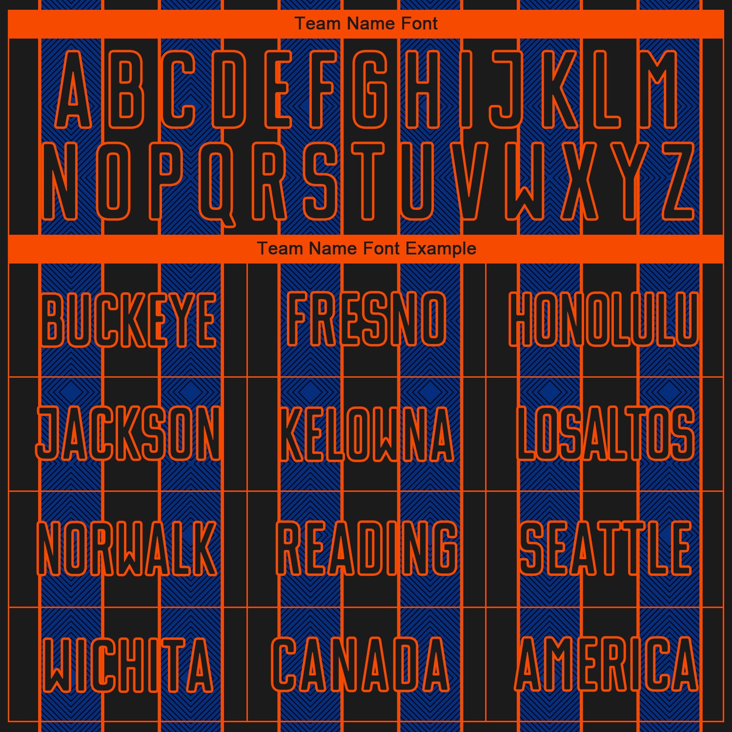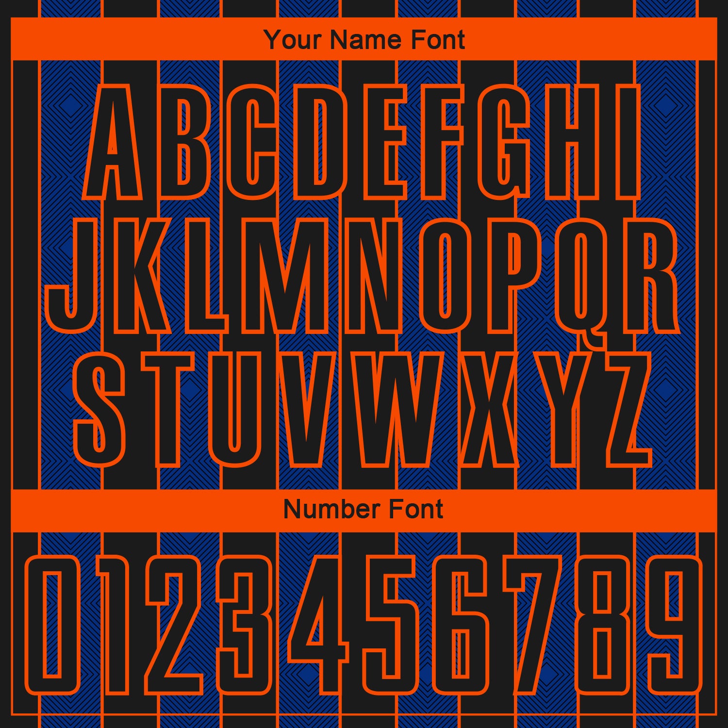 Custom Black Royal-Orange Pinstripe Line Sports Sublimation Soccer Uniform Jersey