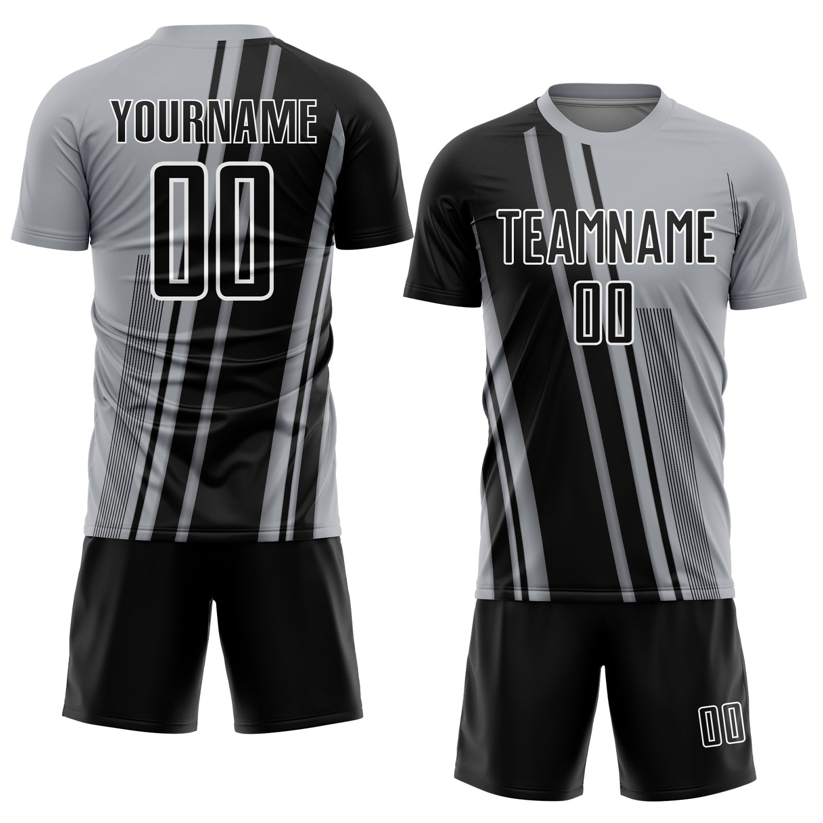 Custom Gray Black-White Lines Sports Sublimation Soccer Uniform Jersey