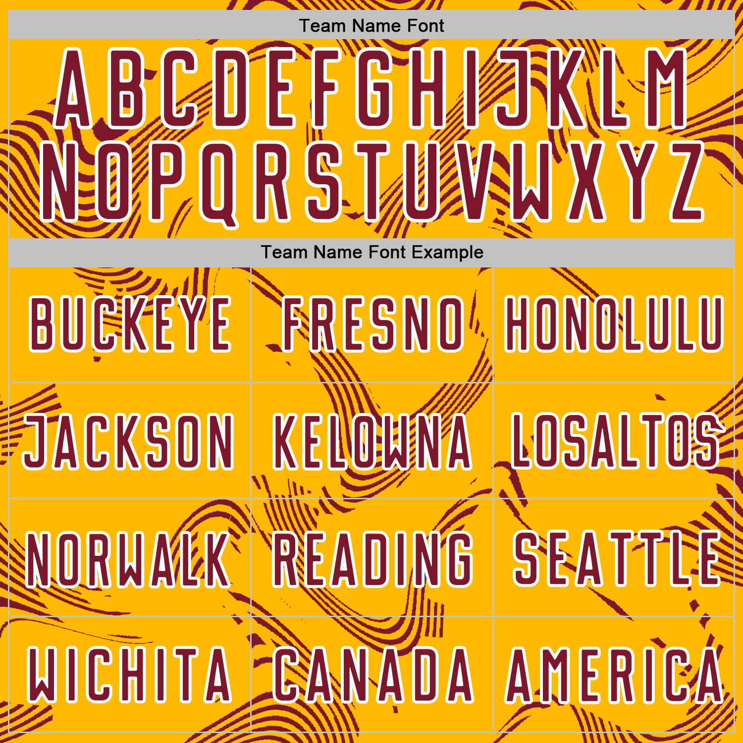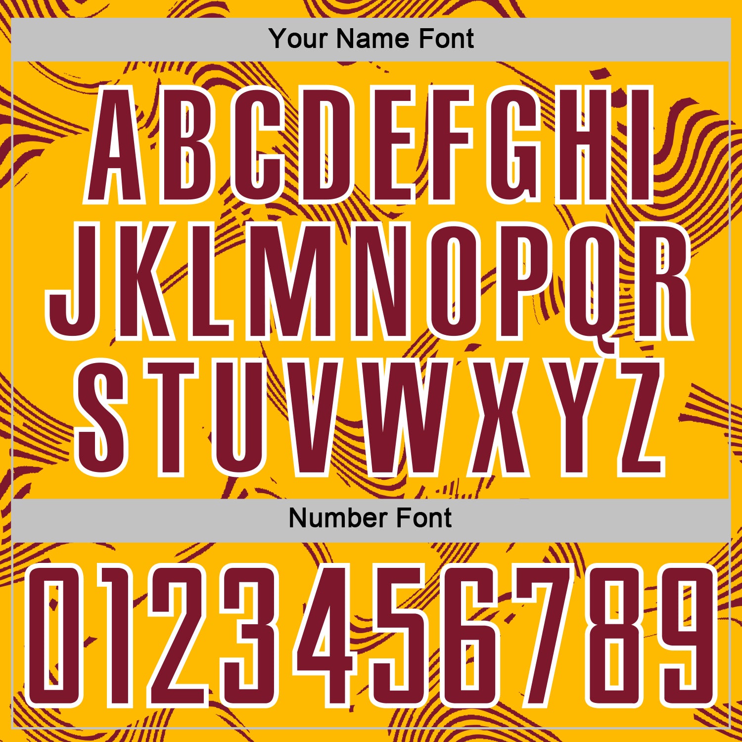 Custom Gold Crimson-White Curve Lines Sports Sublimation Soccer Uniform Jersey