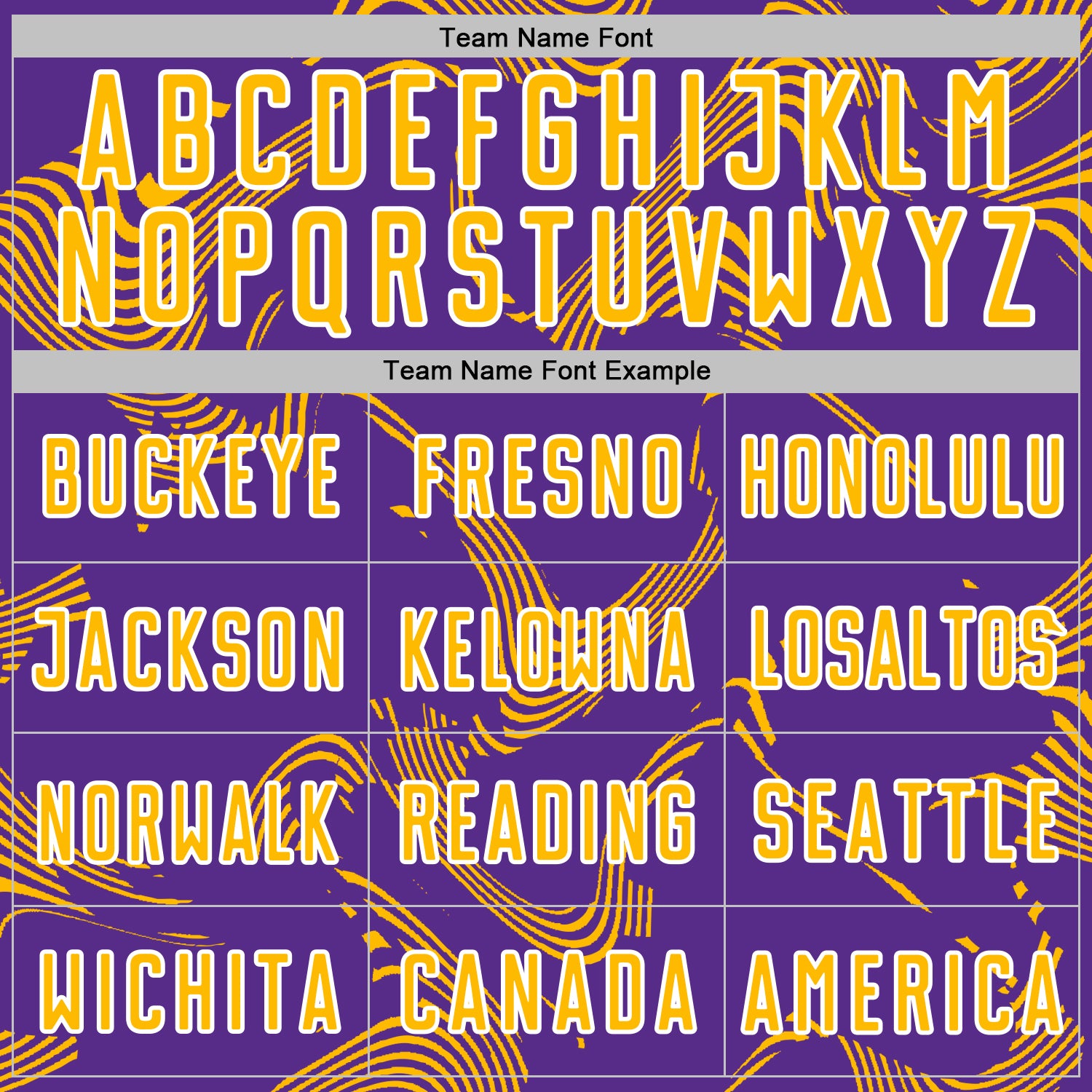 Custom Purple Gold-White Curve Lines Sports Sublimation Soccer Uniform Jersey