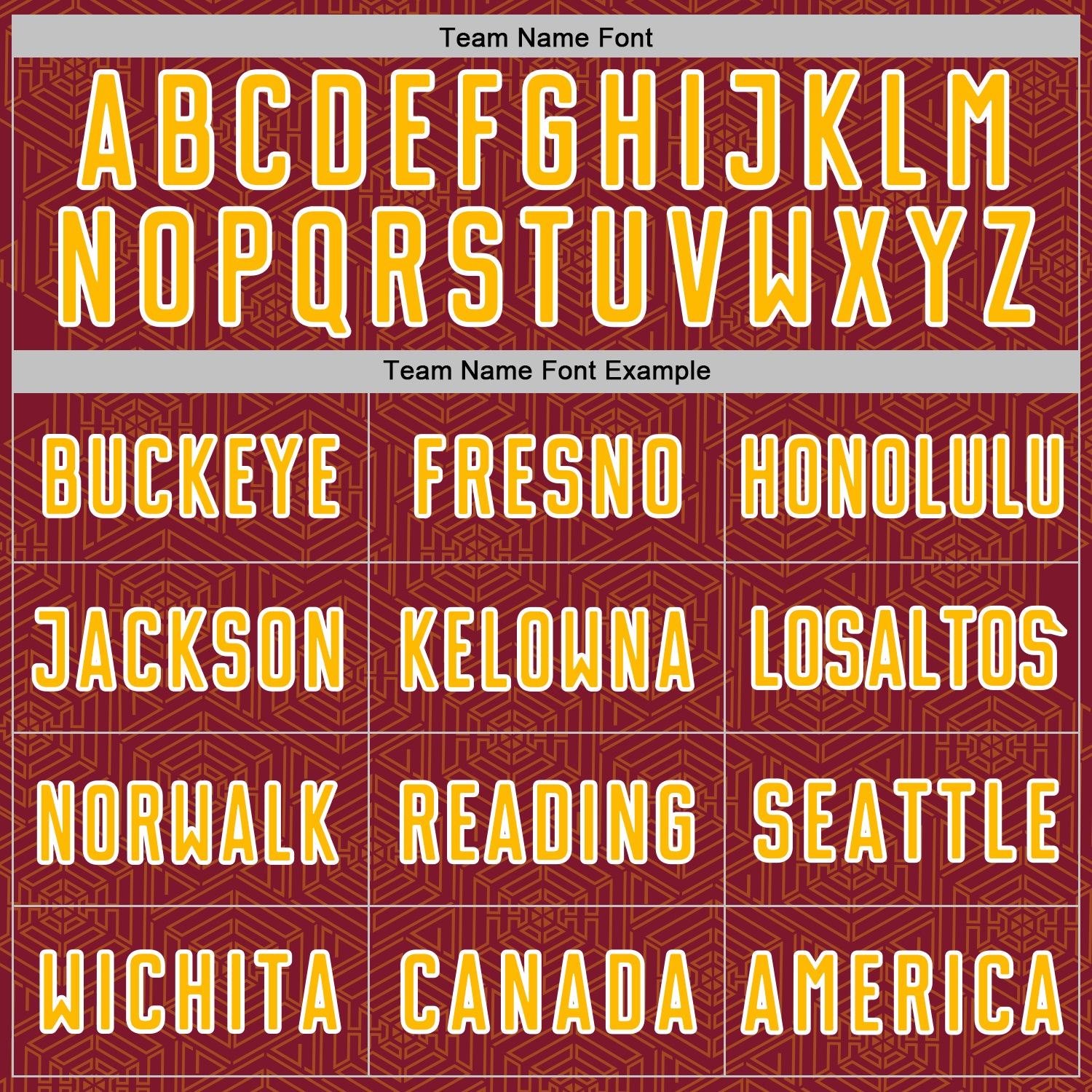 Custom Crimson Gold-White Geometric Shape Sports Sublimation Soccer Uniform Jersey