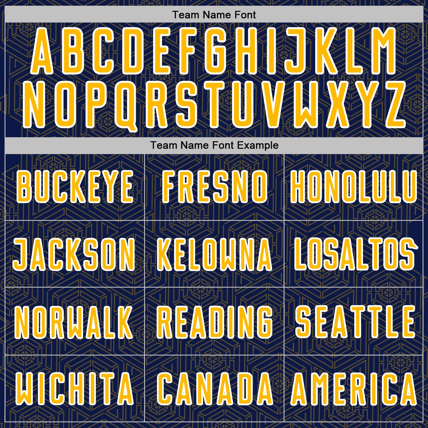 Custom Navy Gold-White Geometric Shape Sports Sublimation Soccer Uniform Jersey