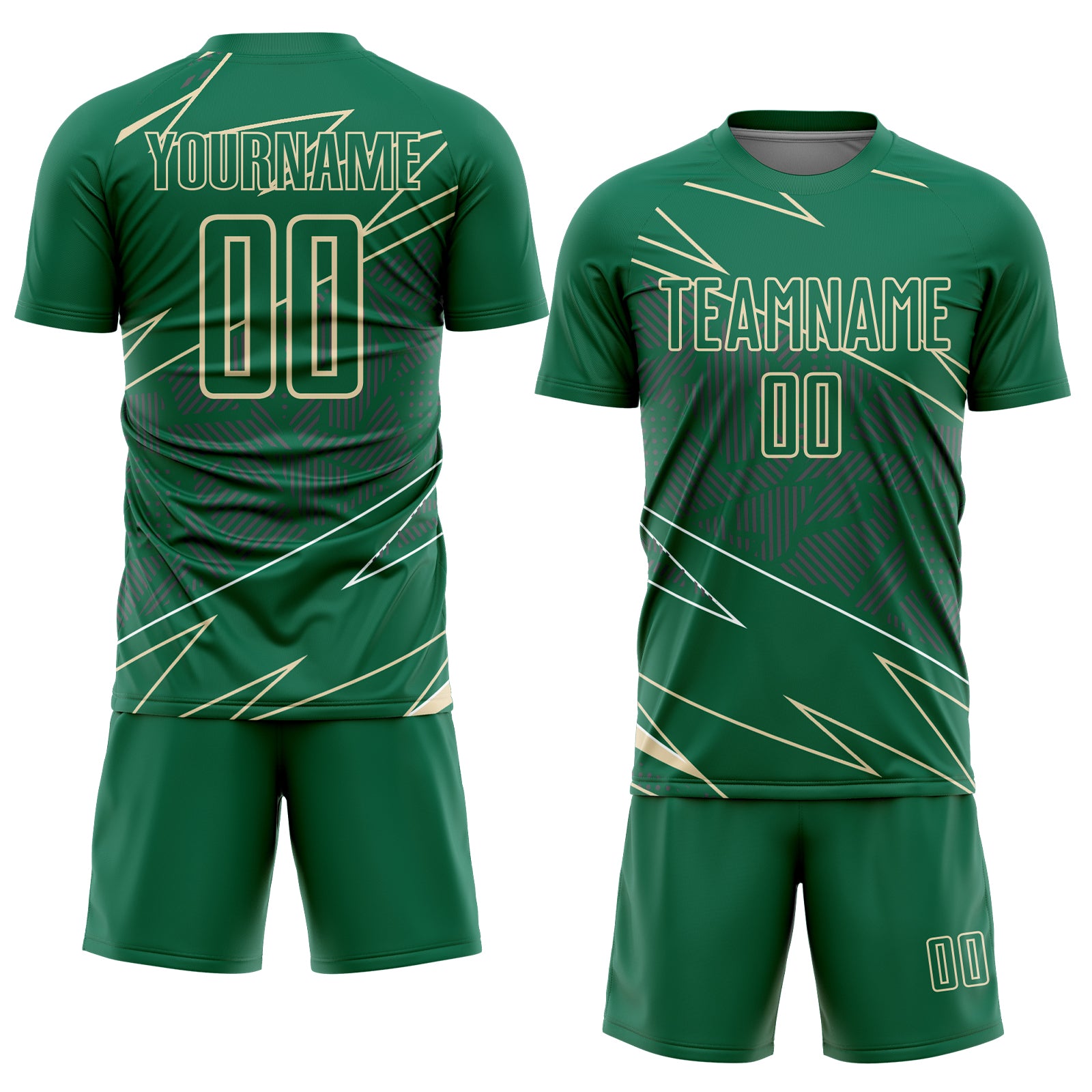 Custom Kelly Green Cream Lines Sports Sublimation Soccer Uniform Jersey