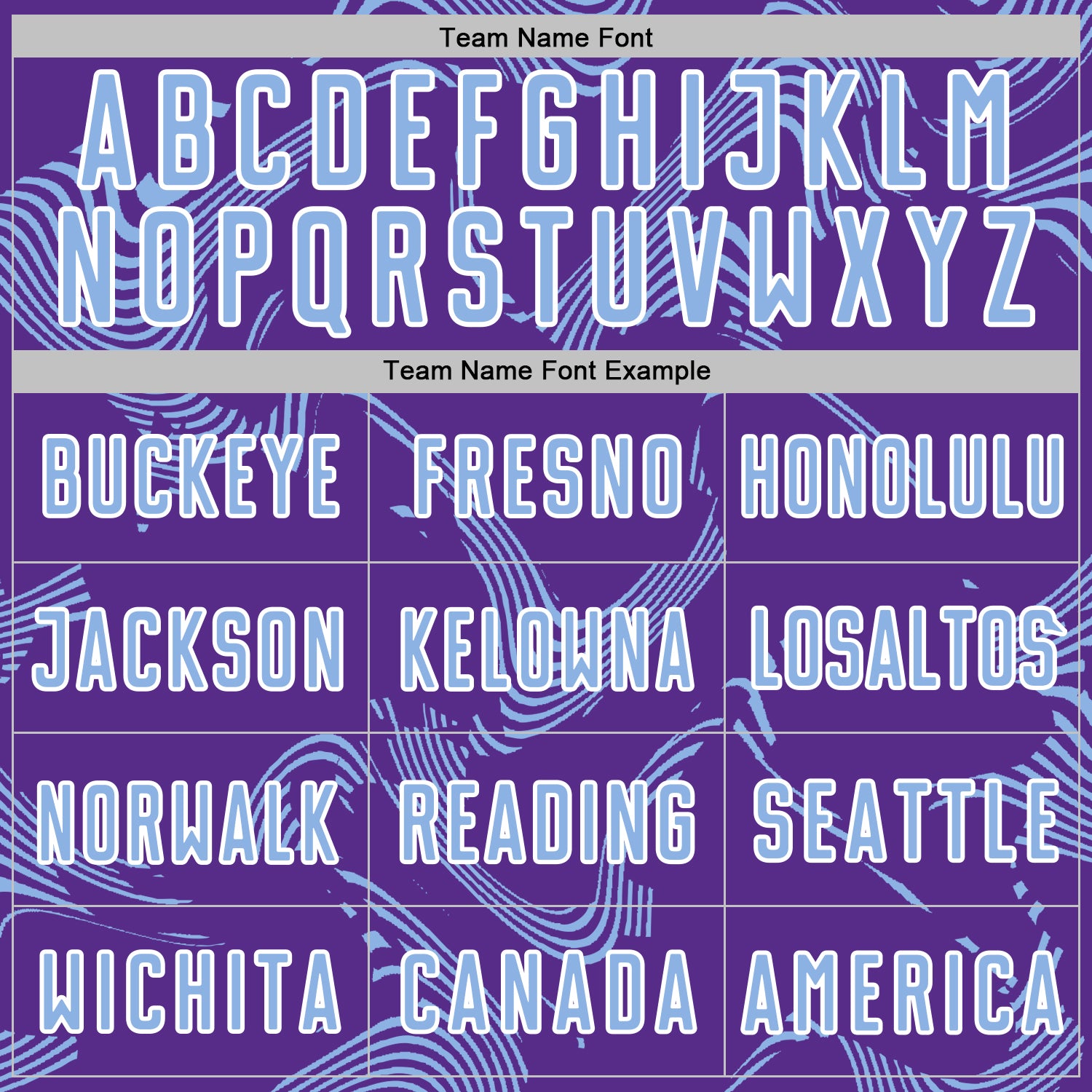 Custom Purple Light Blue-White Curve Lines Sports Sublimation Soccer Uniform Jersey