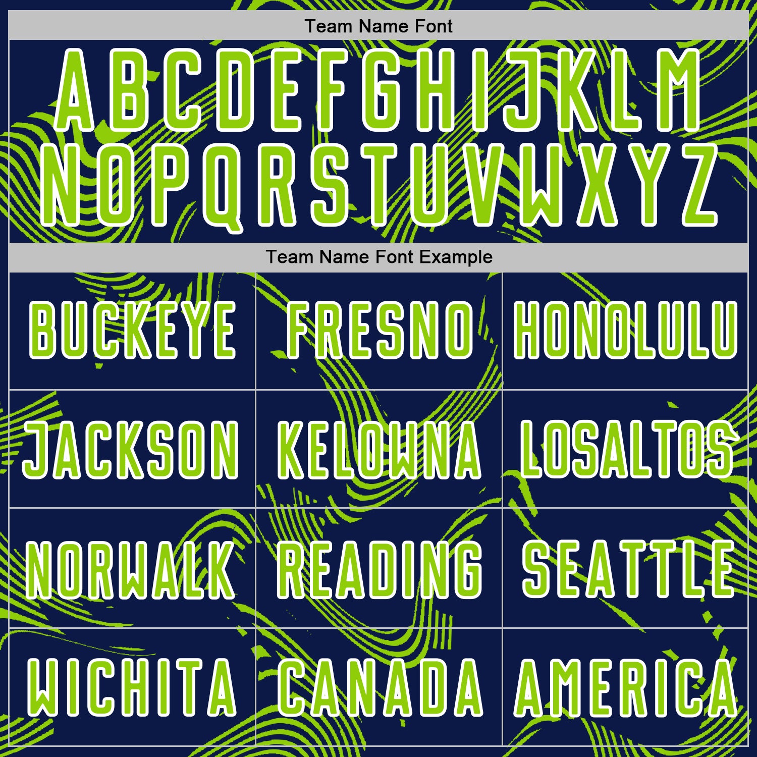 Custom Navy Neon Green-White Curve Lines Sports Sublimation Soccer Uniform Jersey