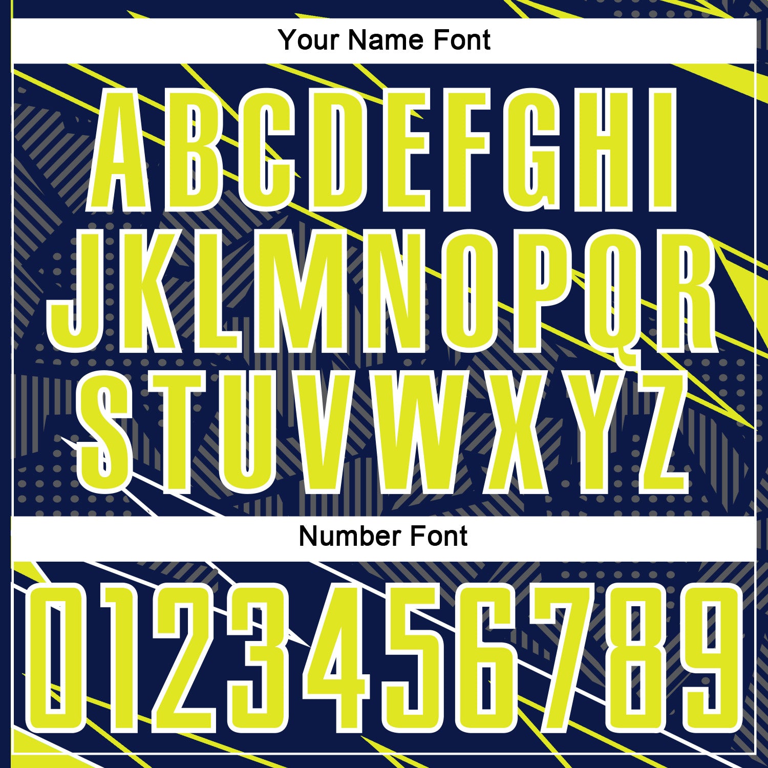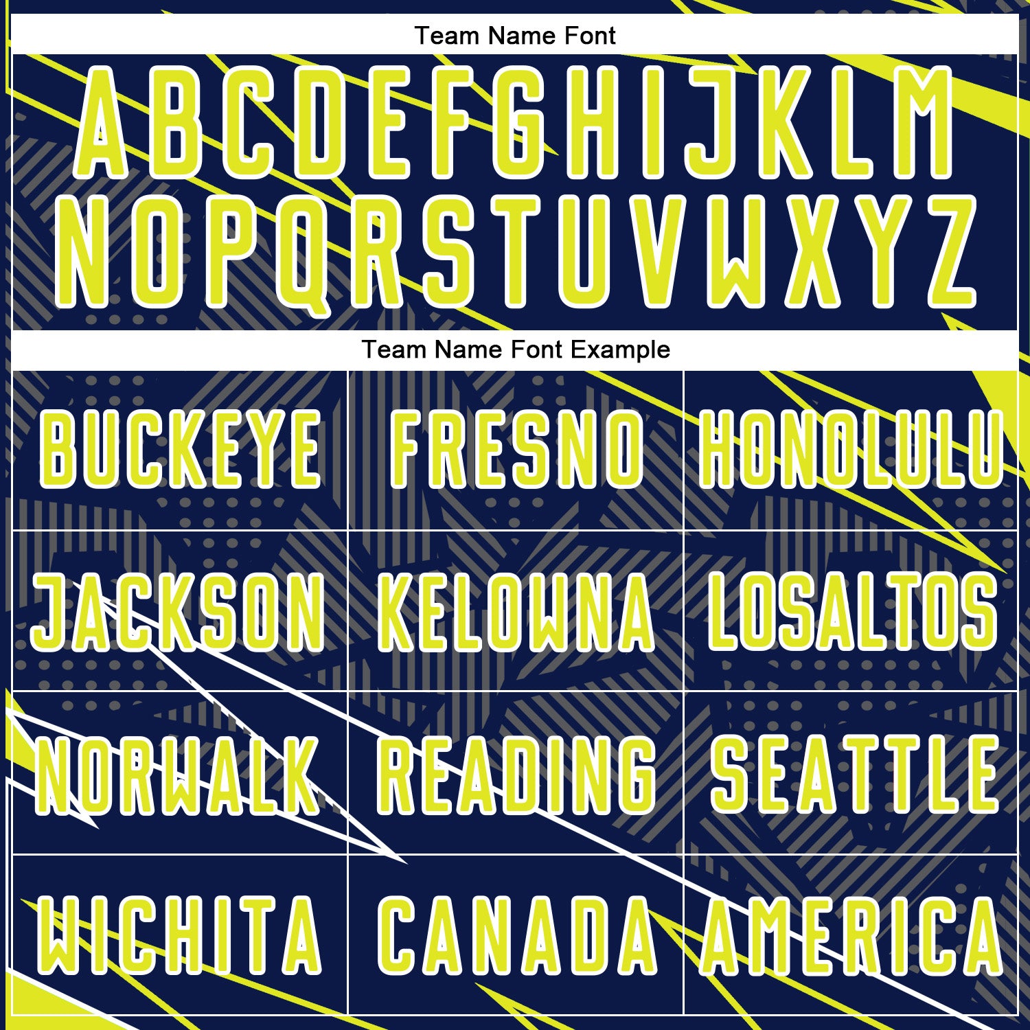 Custom Navy Neon Yellow-White Lines Sports Sublimation Soccer Uniform Jersey