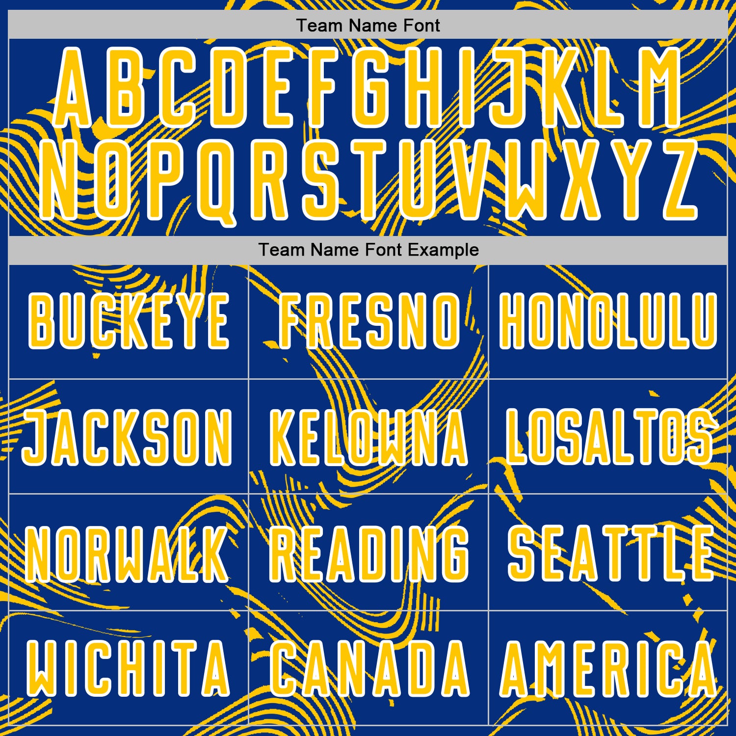 Custom Royal Yellow-White Curve Lines Sports Sublimation Soccer Uniform Jersey