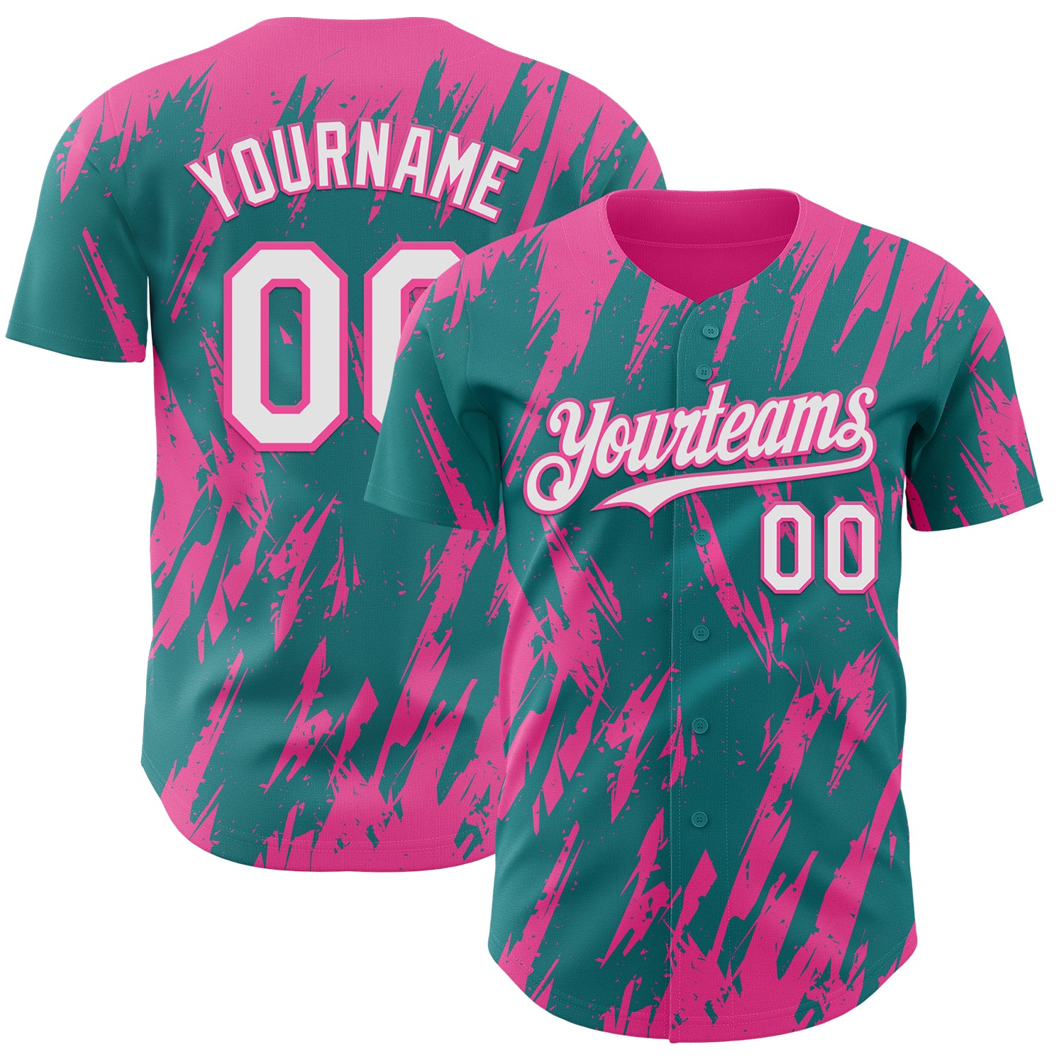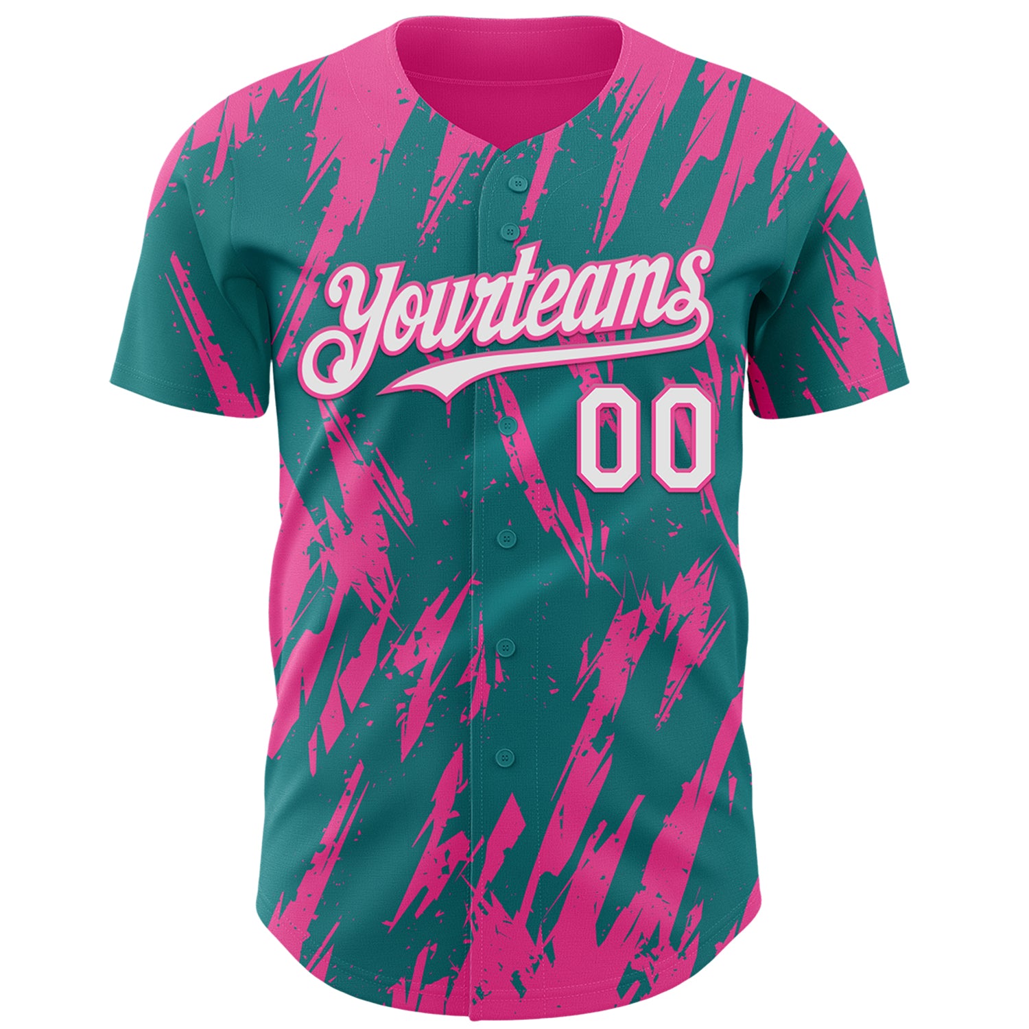 Custom Teal White-Pink 3D Pattern Design Splatter Torn Sharp Brush Stroke Authentic Baseball Jersey