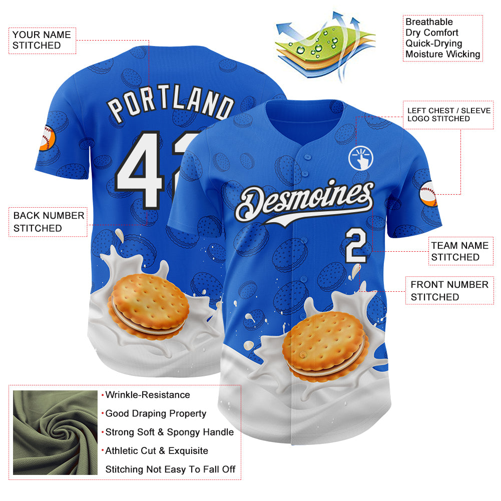 Custom Thunder Blue White-Black Foodie Food Cookies And Milk Authentic Baseball Jersey