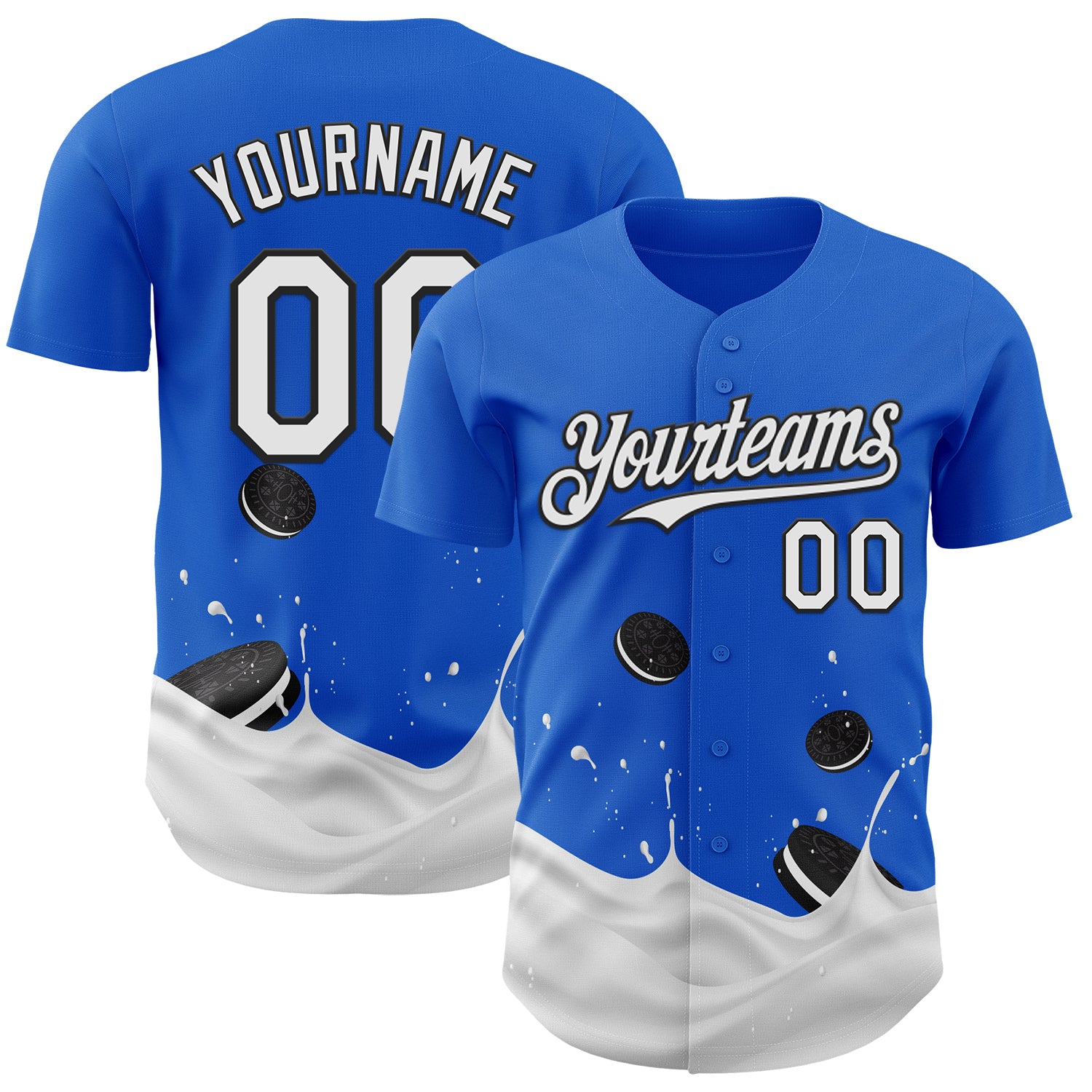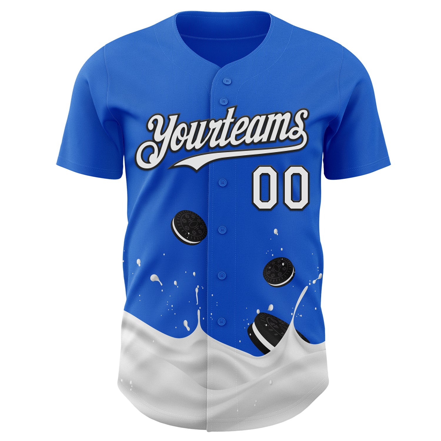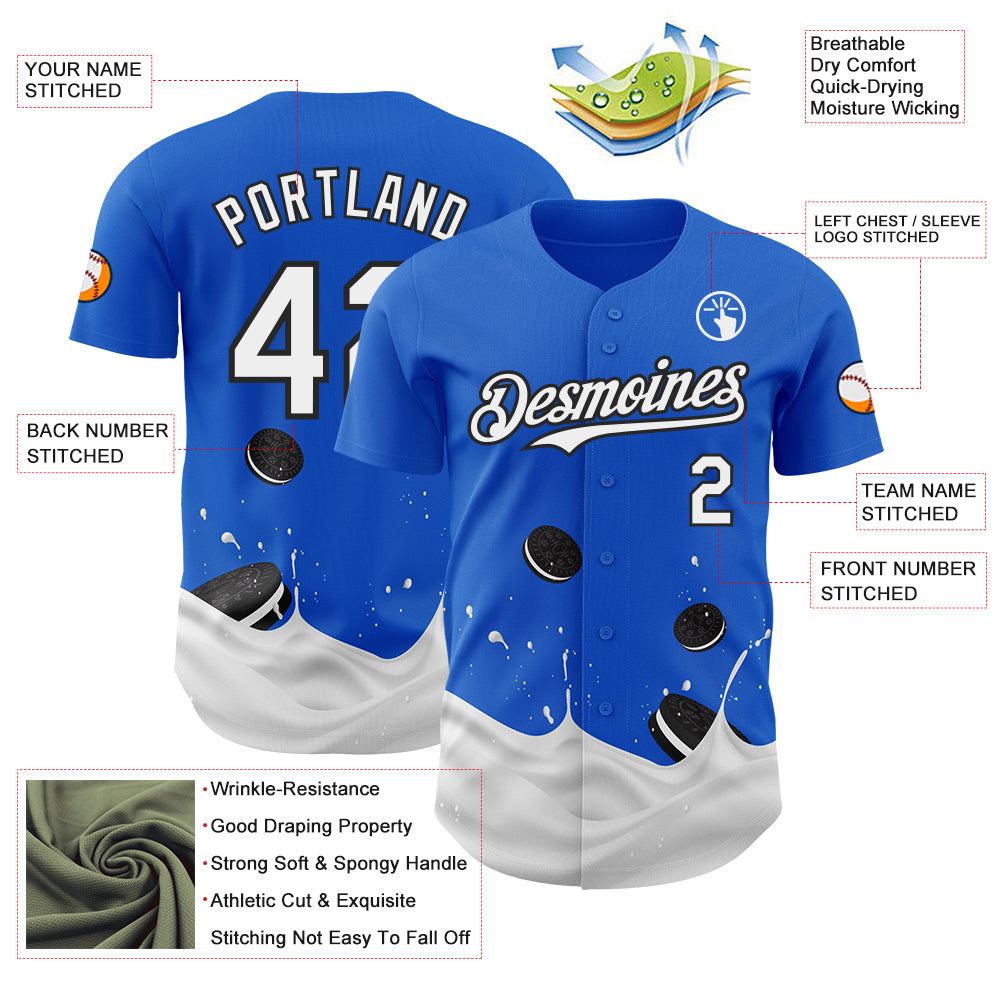 Custom Thunder Blue White-Black Foodie Food Cookies And Milk Authentic Baseball Jersey
