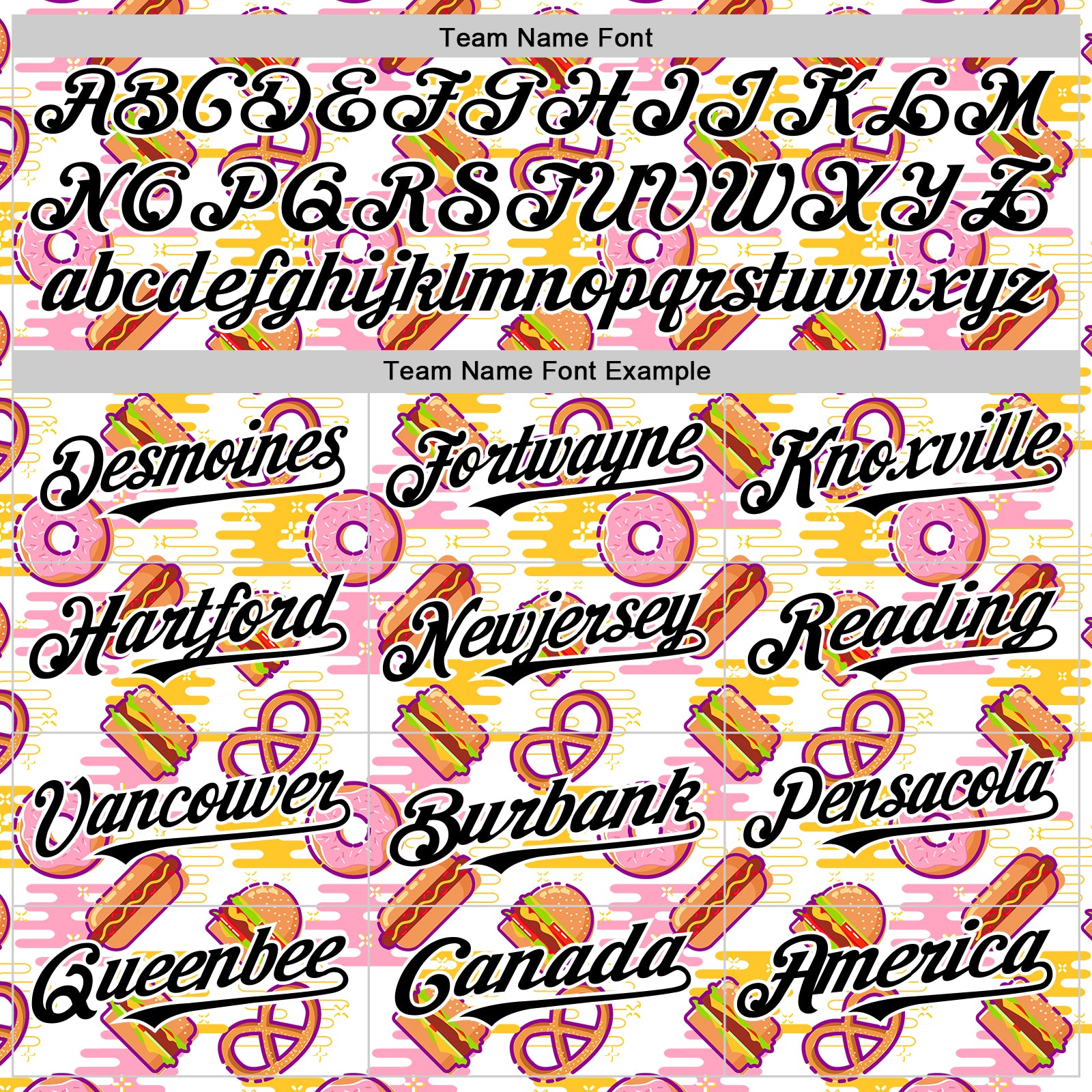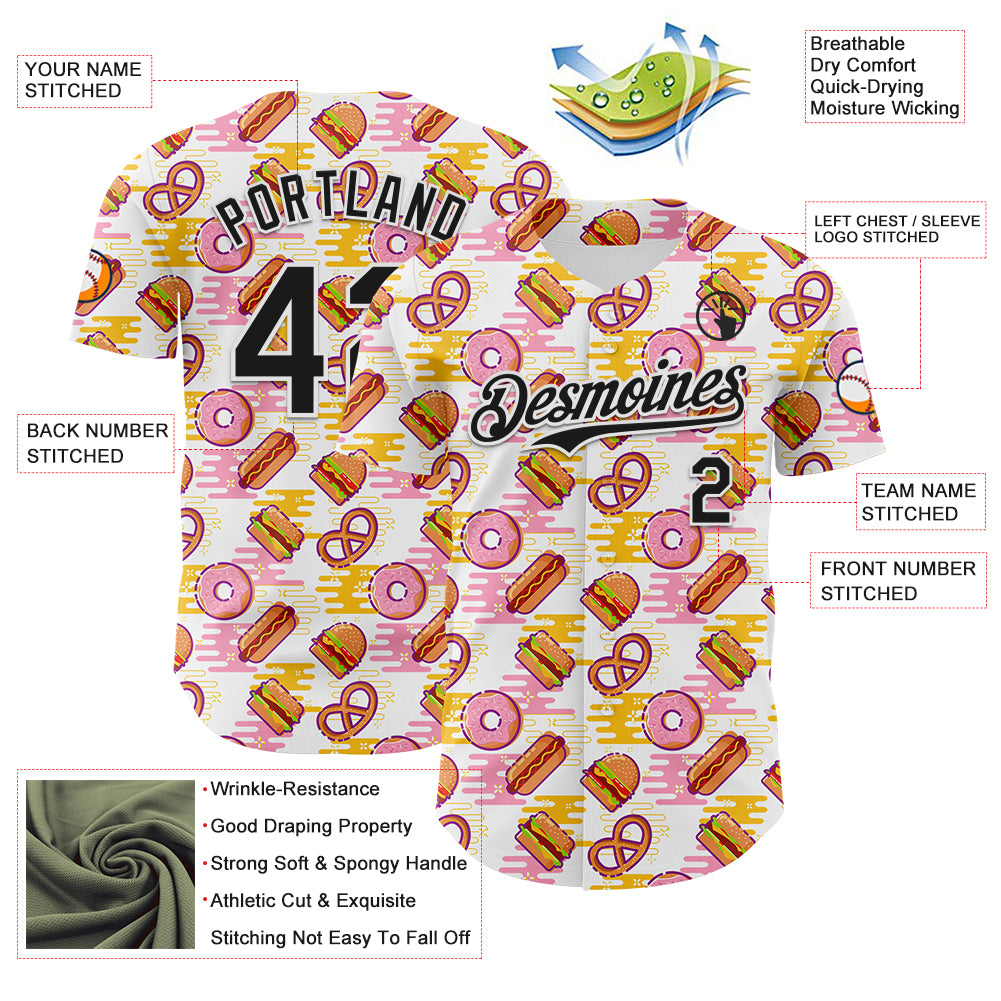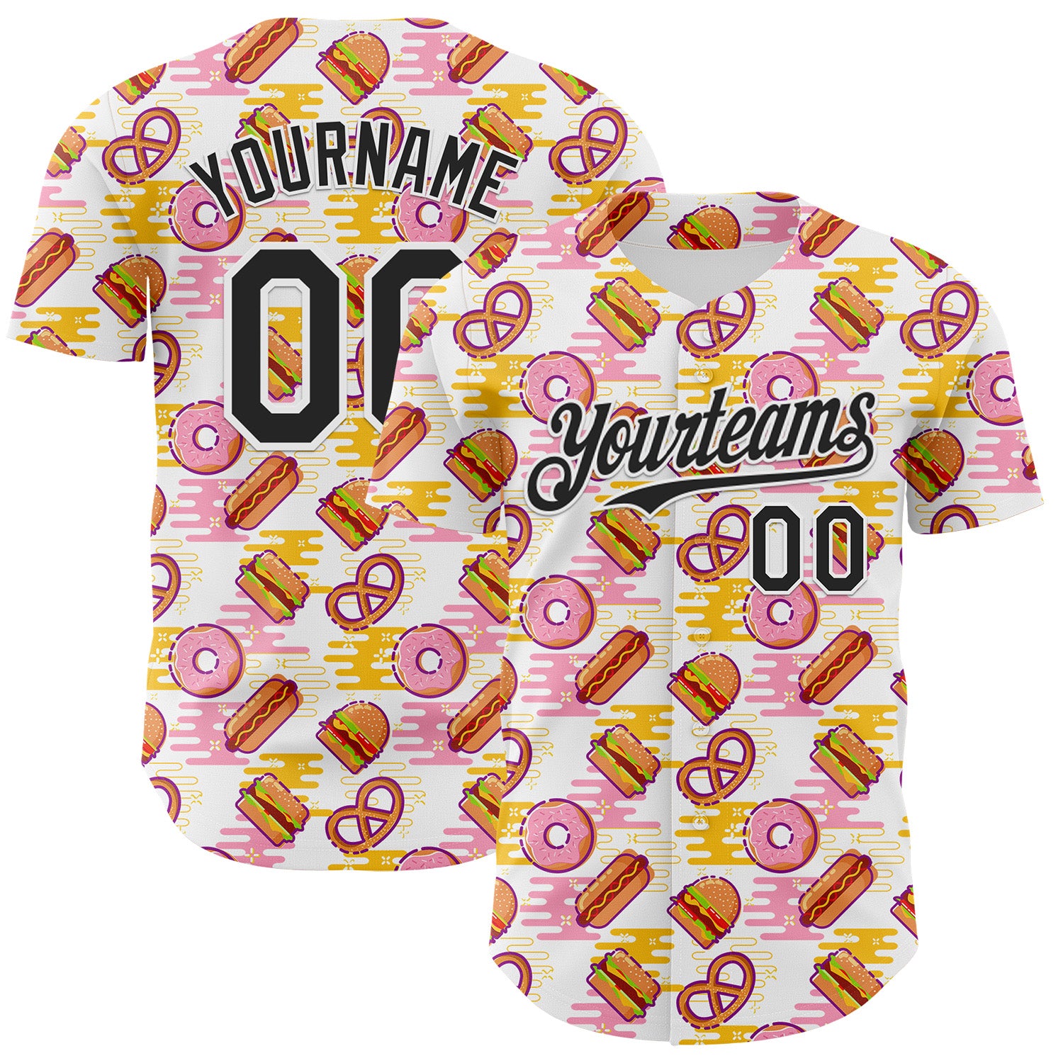 Custom White Black 3D Pattern Design Foodie Fast Food Hot Dog Doughnuts Authentic Baseball Jersey
