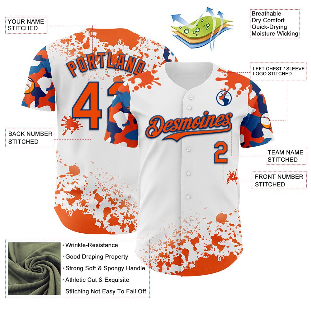 Custom White Orange-US Navy Blue Splatter Camo Two Tone Authentic Baseball Jersey