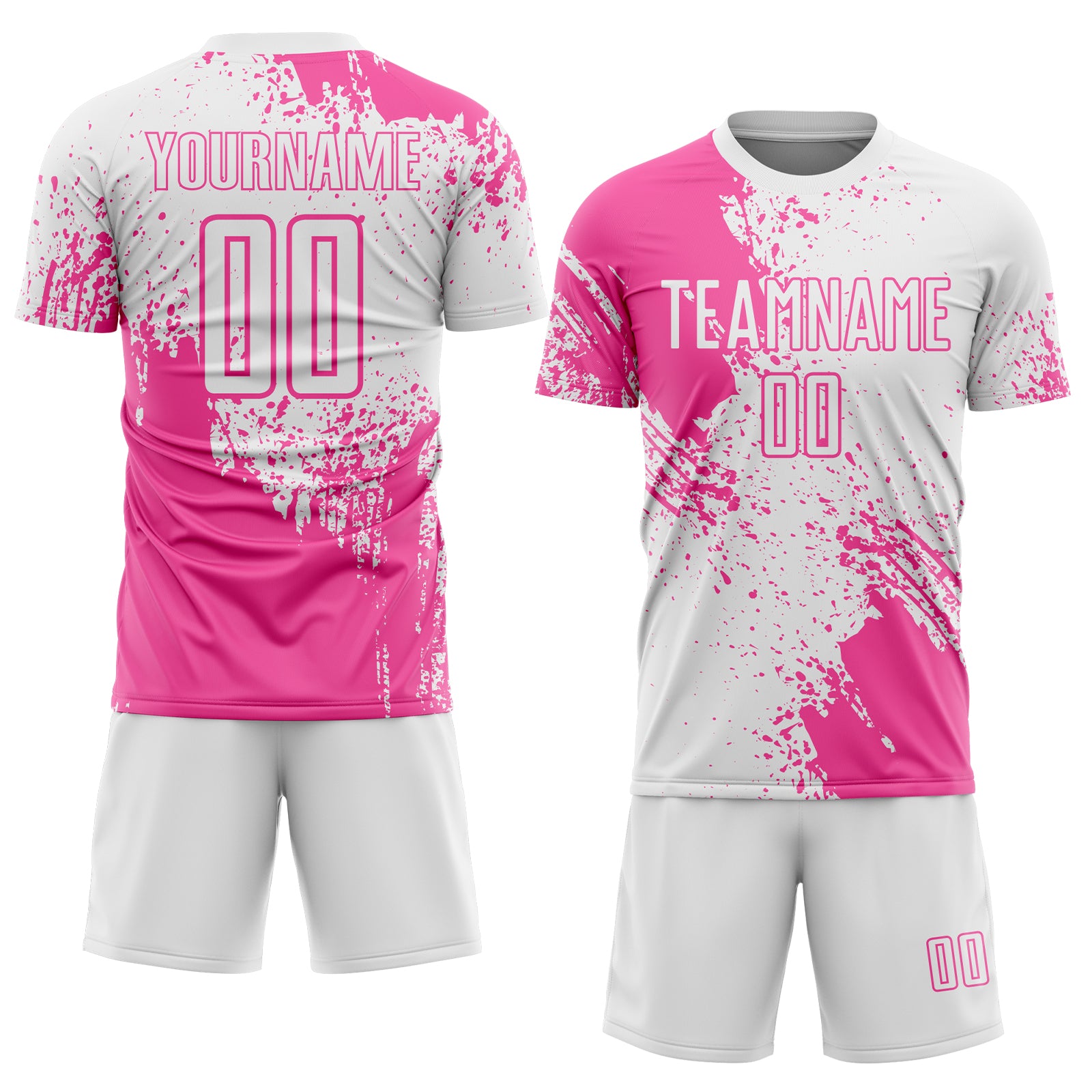 Custom White Pink Abstract Brush Stroke Sports Sublimation Soccer Uniform Jersey