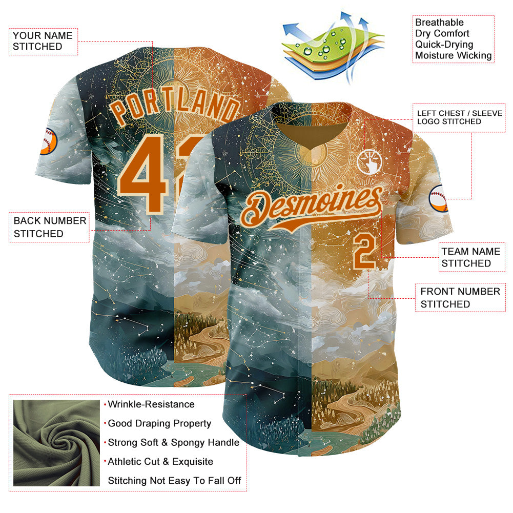 Custom Yellow Texas Orange Gray-Cream Galaxy Star Nebula Authentic Baseball Jersey