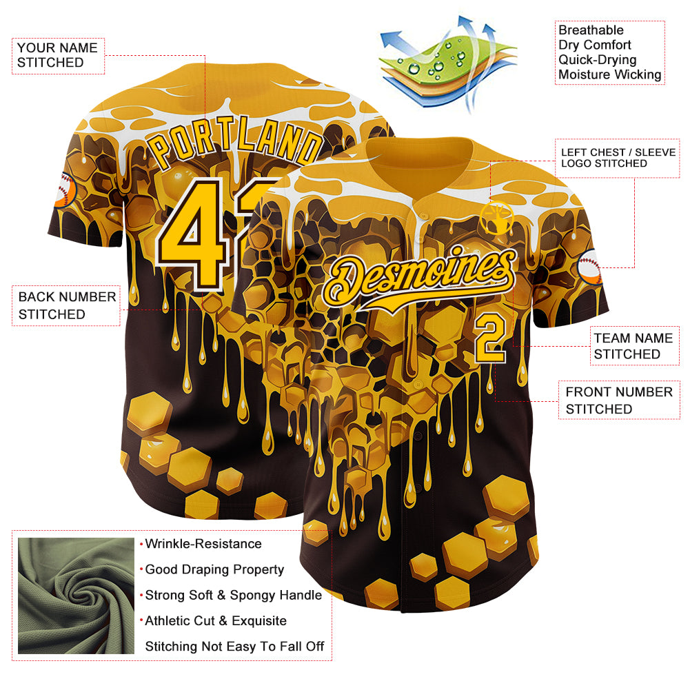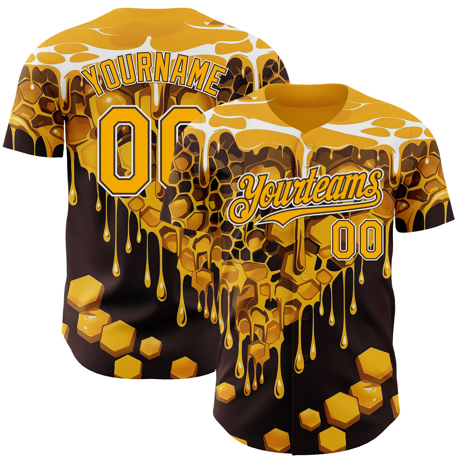 Custom Yellow Black Brown-White Foodie Food Honey Bee Authentic Baseball Jersey