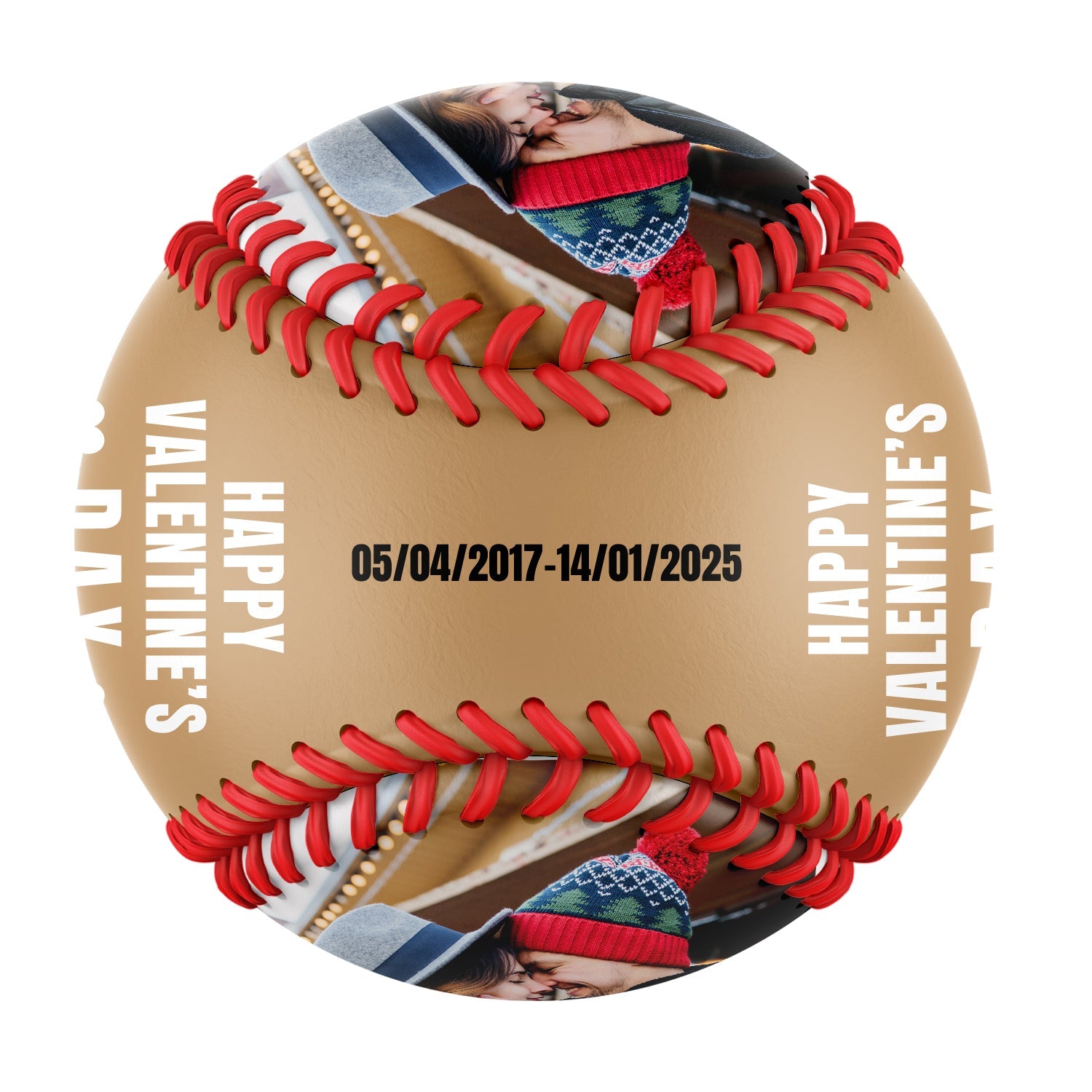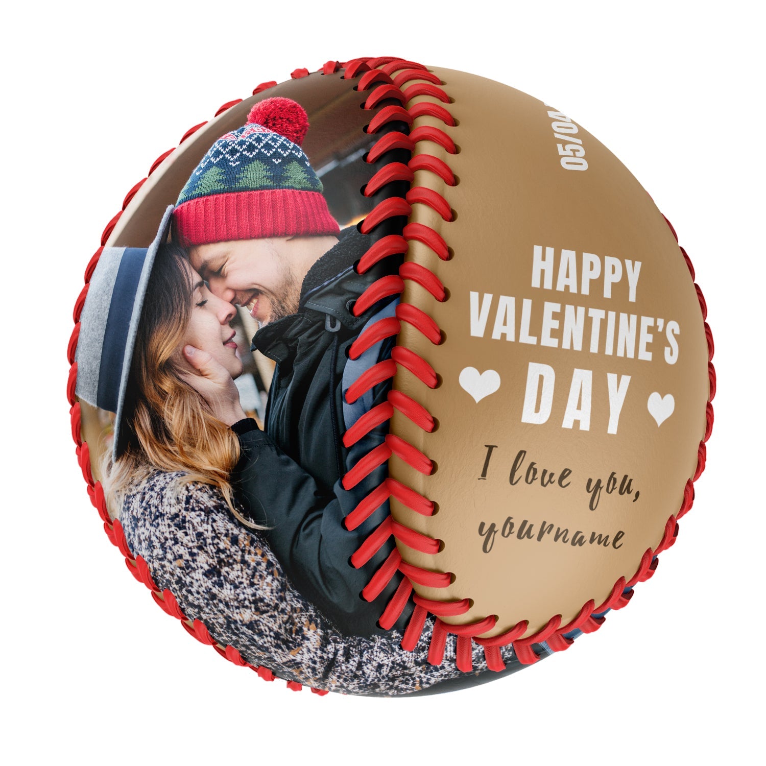 Happy Valentine's Day Personalized Anniversary Name Date Photo Old Gold Baseballs