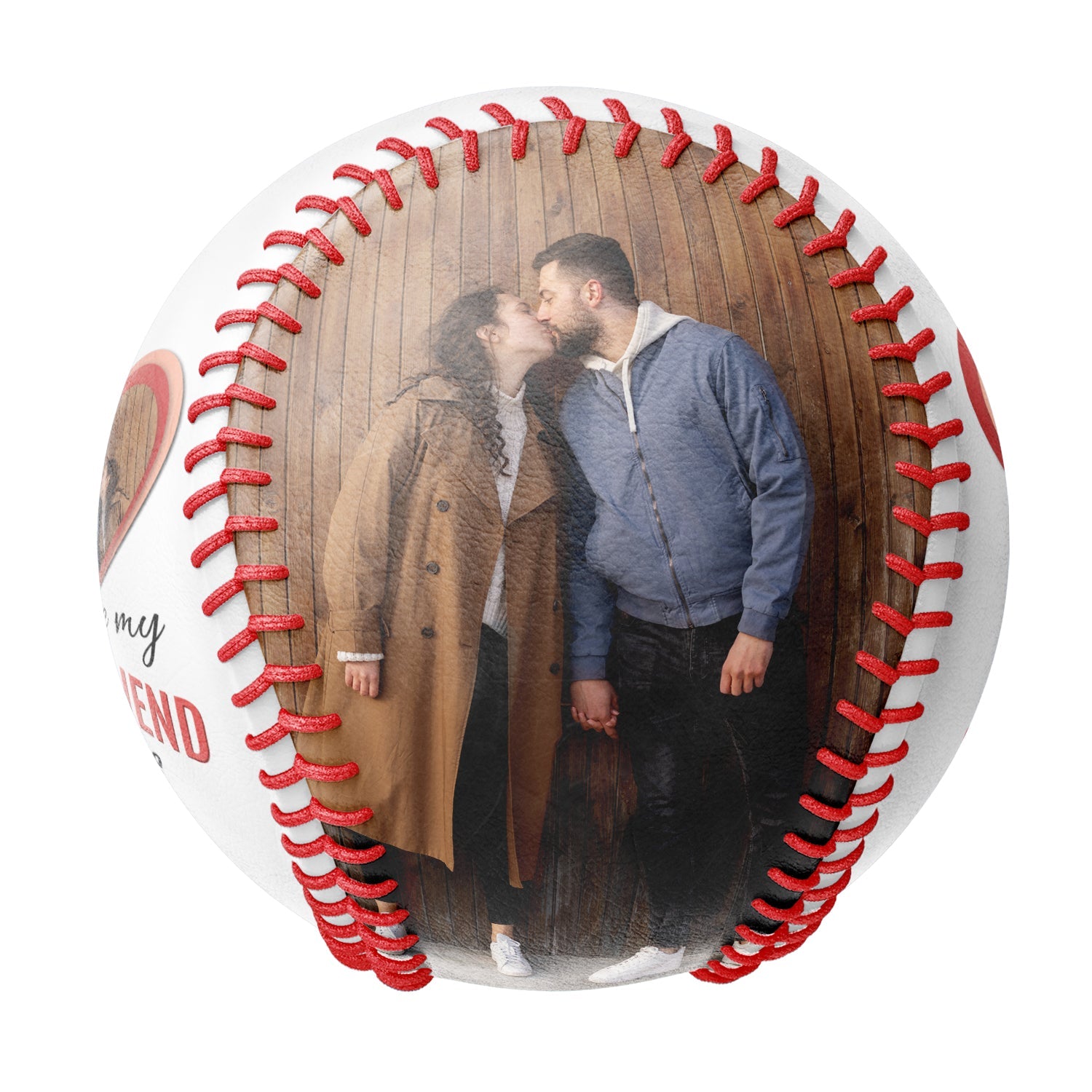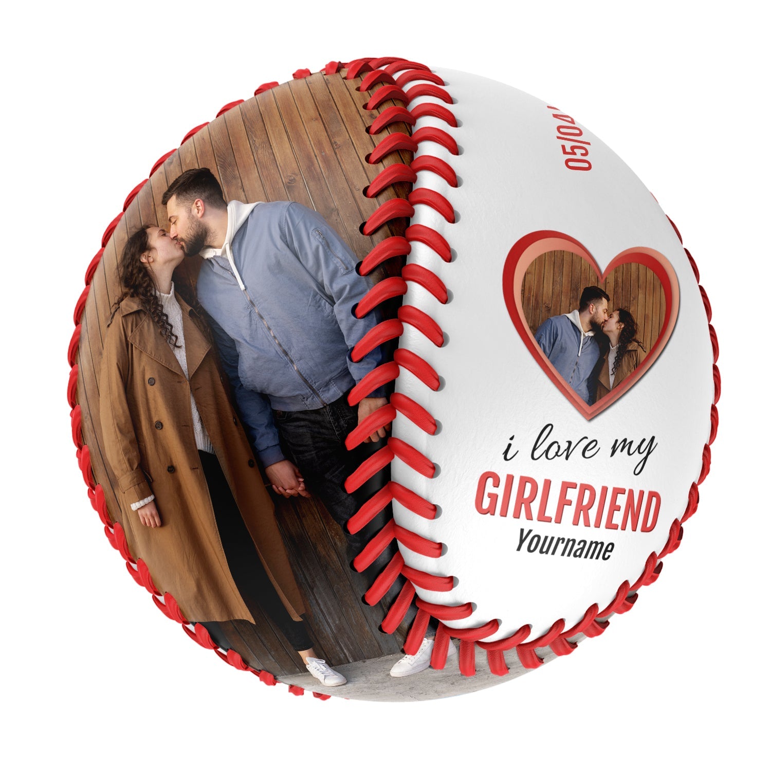 I love My Girlfriend Personalized Anniversary Name Date Photo White Baseballs